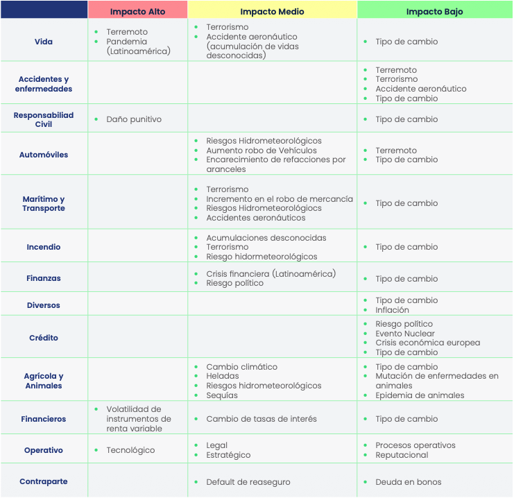 - Titulares de los riesgos (suscripción, inversiones, operaciones, etc.);